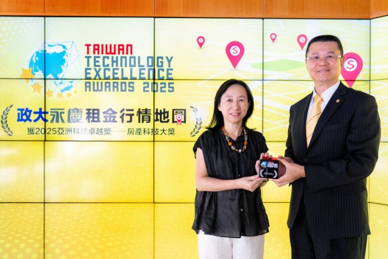 國立政治大學不動產研究中心以學術研究結合科技應用,推動租賃市場資訊透明化,其與永慶房產集團合作開發的「政大永慶租金行情地圖」,榮獲2025年「亞洲科技卓越獎(Asian Technology Excellence Awards)」房產科技(PropTech)大獎。此項殊榮不僅彰顯政大在不動產科技與數據治理領域的研究成果,更展現大學以知識實踐社會責任的具體行動。